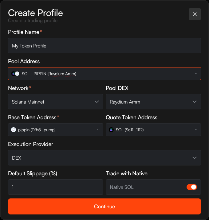 Give your profile a descriptive name, e.g. "MYTOKEN Market Making" or "MYTOKEN DCA".